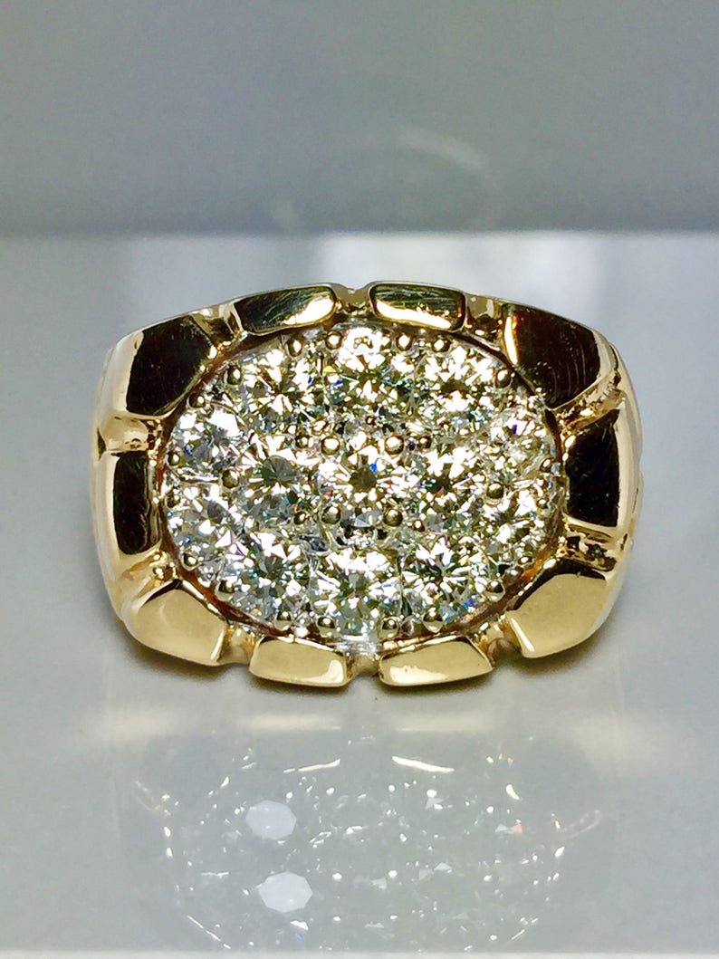 Big 14k Gold Men S Nugget Diamond Ring Cool Gold Etsy